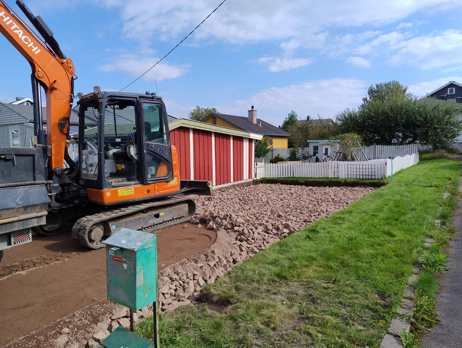 Gjennom mange oppdrag har vi fått god kjennskap til lokale grunnforhold. Det gjør at vi kan planlegge arbeidet riktig, enten det gjelder drenering rundt bolig, grøfter på eiendom eller opparbeiding av uteområder. Med blant annet 6,5-tonns gravemaskin utfører vi både små og mellomstore oppdrag effektivt.