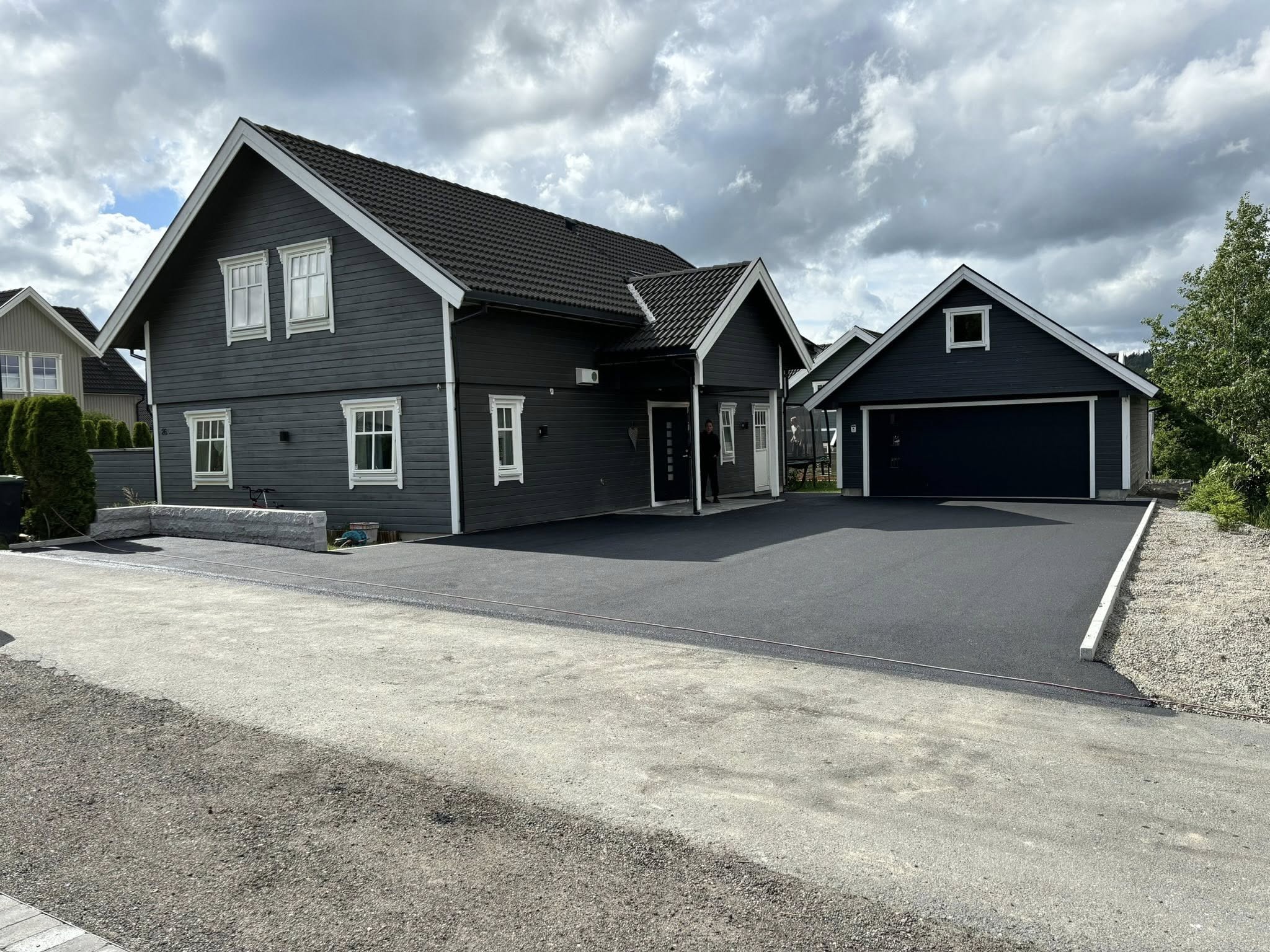 Asfalt gir et rent og solid uttrykk. Vi utfører asfaltering av gårdsplass og andre flater, ofte som del av en total oppgradering ute.
